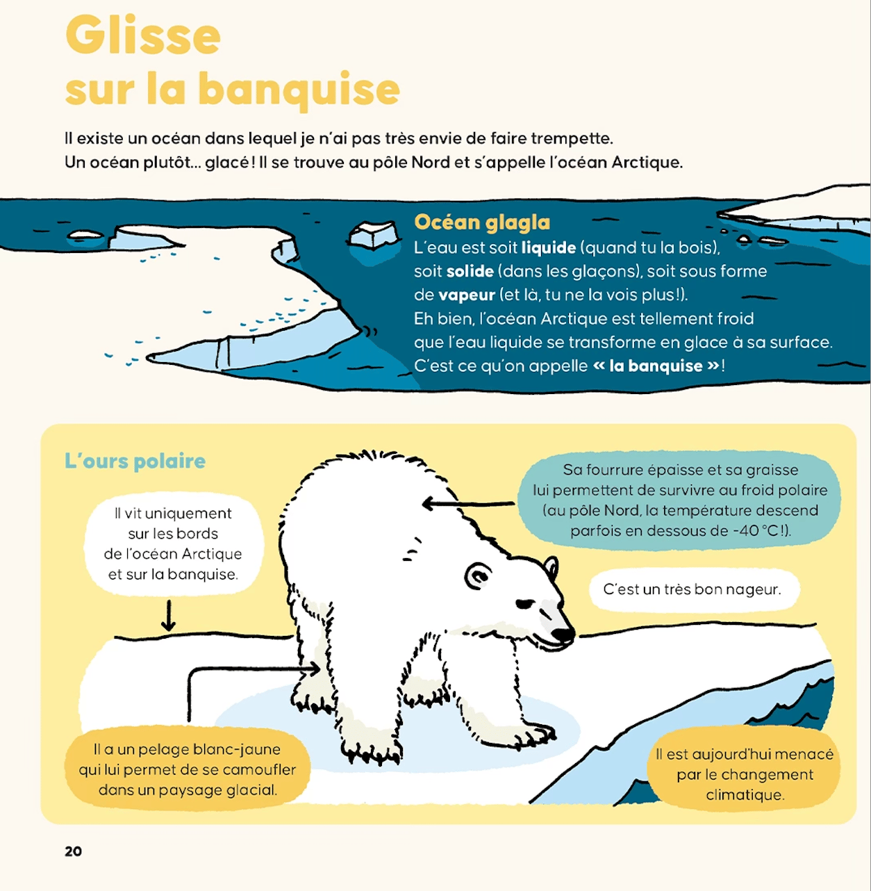 Cette série “Mission planète”, réalisée avec Alice Durand et illustrée par Perceval Barrier, est un mélange de pages informatives, de jeux et d’activités à faire en famille. Ces livres sont accessibles à partir de 4 ans en lecture accompagnée et pour tous les enfants plus âgés en lecture autonome. Mais je suis sûr qu’ils intéresseront aussi les adolescents et les parents !